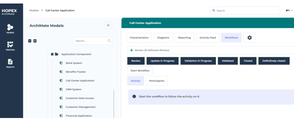 With HOPEX for the ArchiMate Framework you can use workflow from the collaboration button.