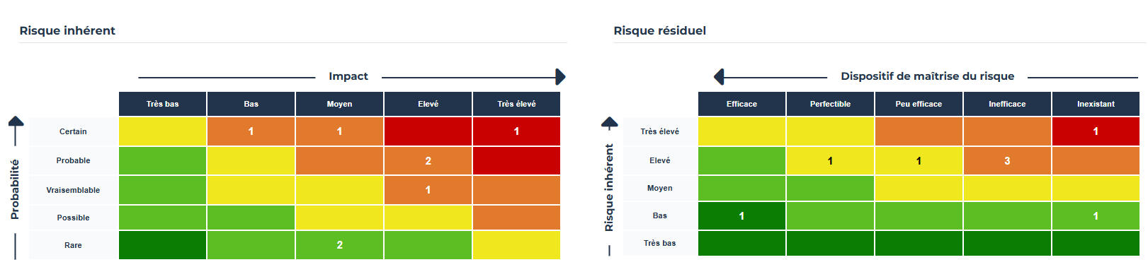 *Le dispositif de maîtrise du risque caractérise le niveau d'efficacité des éléments de maîtrise déployés (contrôles) pour évaluer le risque.
