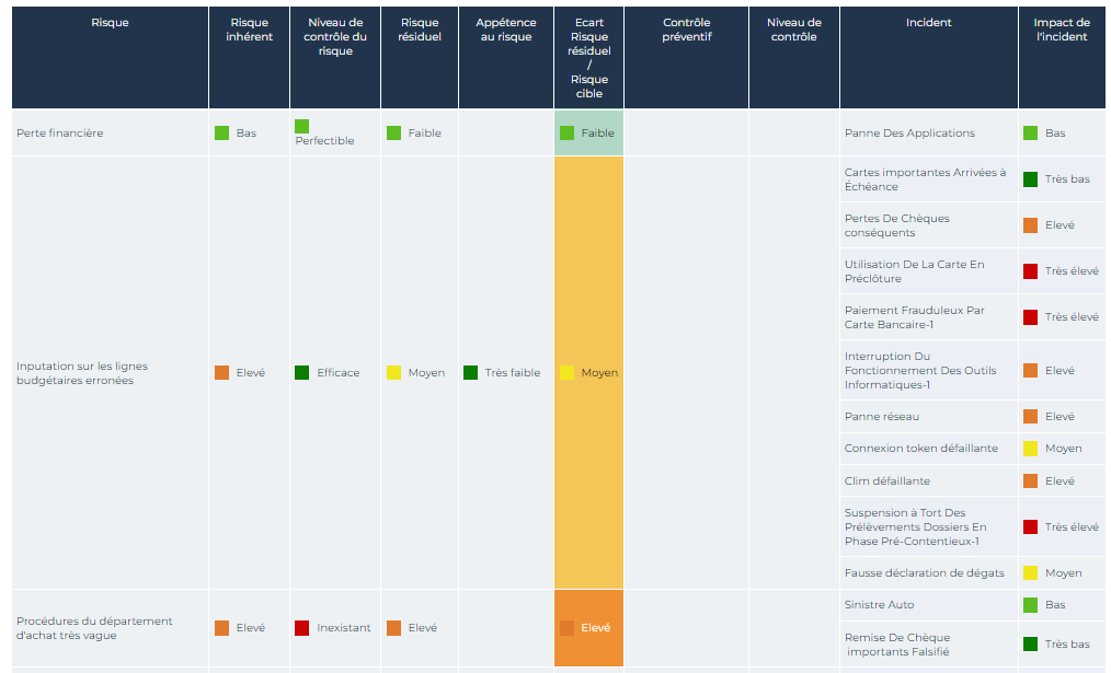 Une matrice permet de donner au comité de direction une assurance ciblée de la gestion des risques. Elle permet de détecter les incohérences entre les évaluations de risques, les évaluations de contrôles et l'impact des incidents.
