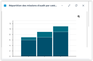 Ce widget montre l'évolution dans le temps (par plan d'audit) de la répartition des missions d'audit par catégorie d'audit: