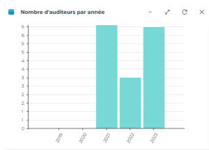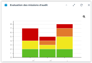 Ce widget montre l'évolution dans le temps (par plan d'audit) des évaluations attribuées aux missions d'audit :
