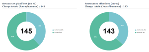Ce rapport compare les ressources et la charge de travail planifiées/effectives pour les missions d'audit de conformité et d'efficacité.