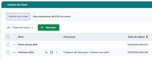 • visualiser les crises auxquelles vous devez participer (onglet Mes exécutions de PCA en cours)