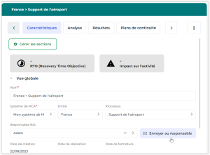 Spécifier un responsable BIA et lui envoyer la matrice BIA