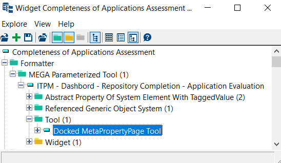 Updatable Widgets use a MEGA Parameterized Tool as Formatter. This Tool is a Docked MetaPropertyPage Tool. The viewer control is defined in the Parameterized Tool Property Page.