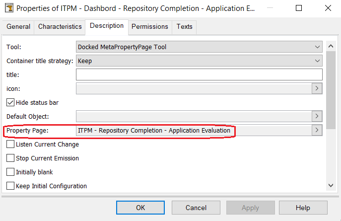 The property page to update is defined in the Tool Description page:
