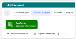 Le dernier Cyberscore fournisseur apparaît en haut de la page.
