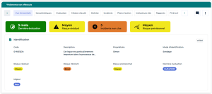 • Risque résiduel : moyenne du risque net obtenu à partir de la dernière session d'évaluation. Tous les contextes pour lesquels le risque a été évalué sont pris en compte (entités, processus, application).