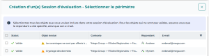 3. Sélectionnez le périmètre de la session, c'est-dire les objets à évaluer dans leur contexte.