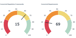 Des jauges vous indiquent le pourcentage de cadres réglementaires et d'exigences qui ont été convertis jusqu'à présent.