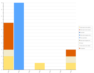 Ce tableau de bord affiche la répartition des actions par avancement pour toutes les recommandations en cours dont vous êtes responsable :