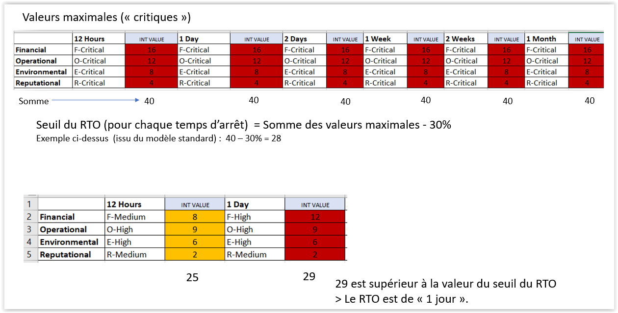 Si le temps d'arrêt pour lequel la somme des valeurs des réponses est plus grand que le seuil du RTO, c'est ce temps d'arrêt qui devient le RTO calculé.