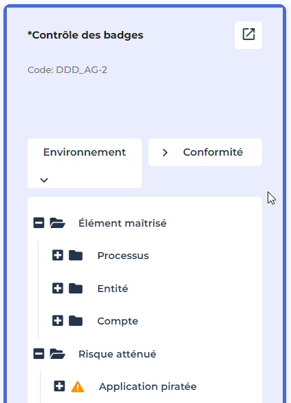 Les éléments de l'environnement du contrôle s'affichent dans des arborescences. Il s'agit du périmètre étendu du contrôle.