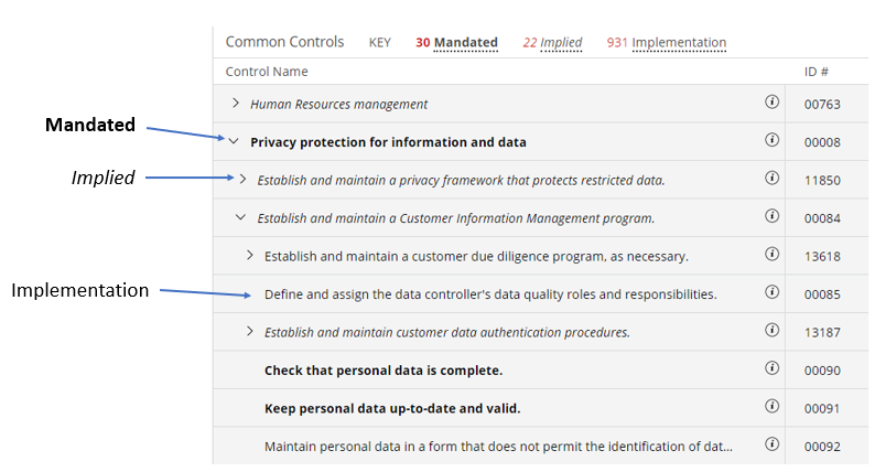 Les "Implied Controls" sont des "Common Controls" qui ne sont pas obligatoires mais qui contiennent des "Mandated Controls" dans leur hiérarchie.