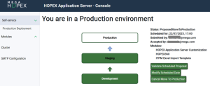 From the Production environment, you can validate the scheduled Move to Production. If needed, you also have the option to modify or cancel the proposal.