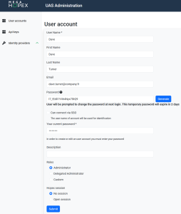 API keys not associated with a HOPEX session must be created directly in the HAS Console.