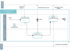 • Le cadre contenant les différentes composantes représente le processus décrit par le diagramme. Son nom “Traiter les demandes d'achat” figure dans l'encadré en haut à gauche.