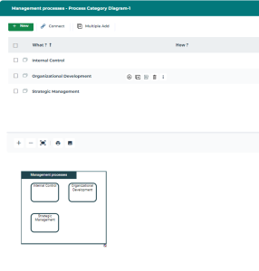 • Mode graphique : grâce à l'import d'objets depuis le référentiel, vous pouvez facilement afficher dans votre diagramme les objets déjà créés et reliés à votre catégorie de processus.
