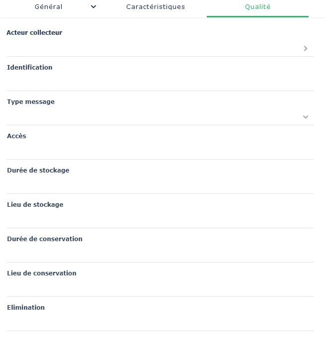 Le champ Type-Message permet de caractériser le flux : “Données externes”, “Enregistrement Qualité” ou “Instruction”.