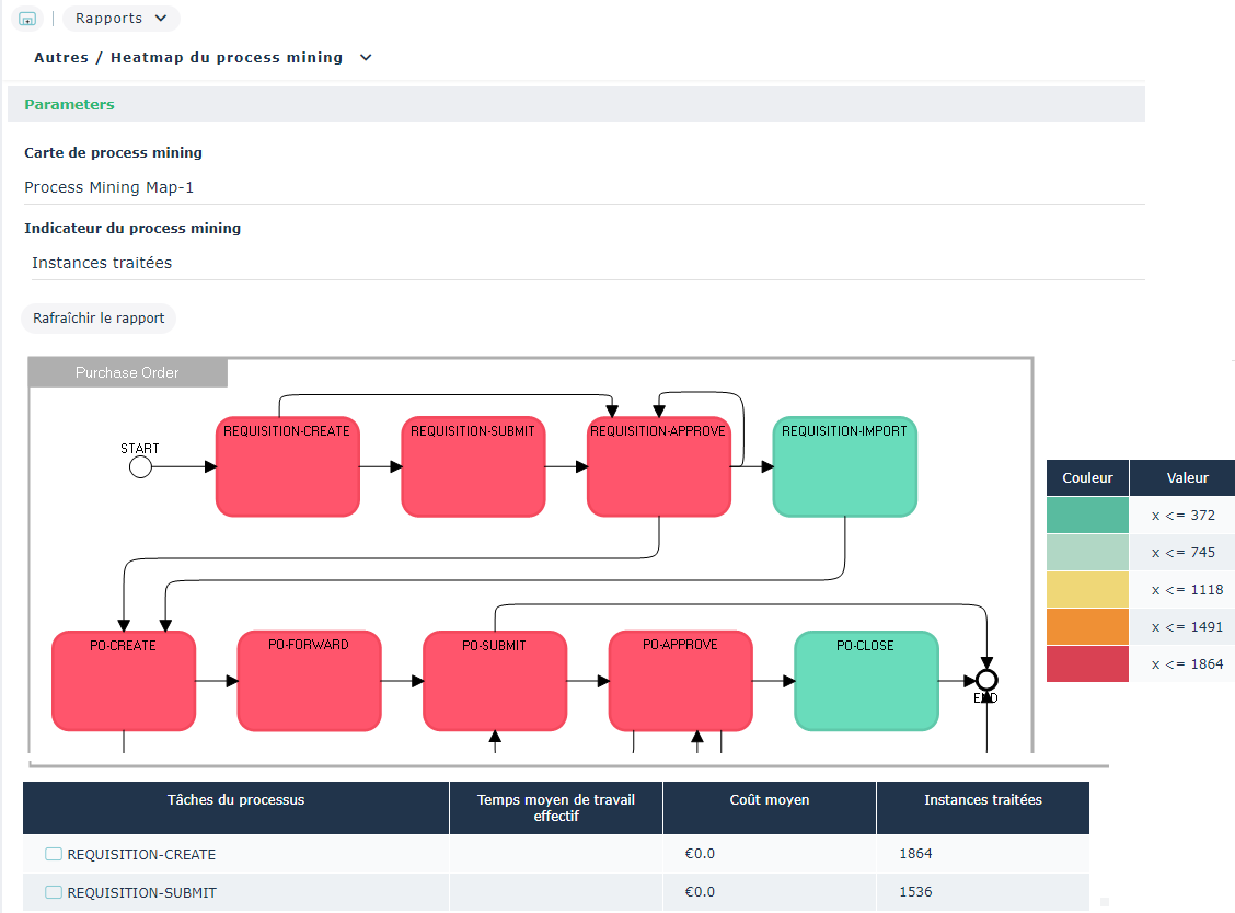 Le rapport Heatmap du Process Mining est généré.