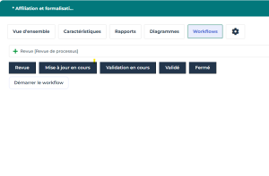Le processus est verrouillé dès son envoi pour approbation (ainsi que le diagramme correspondant, sa description et ses composants). Il n'est alors plus possible de faire des modifications, sauf à remettre explicitement le processus au statut "mise à jour en cours".