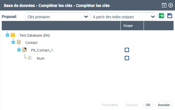 La liste Proposition permet d'indiquer le critère utilisé pour compléter les clés primaires :