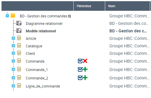 A la fin de la dénormalisation, vous pouvez voir que les deux nouvelles tables sont désormais en correspondance avec l'entité "Commande".