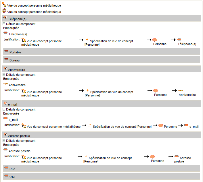L'exemple ci-dessous permet de visualiser les éléments de la vue basée sur le concept "Personne".