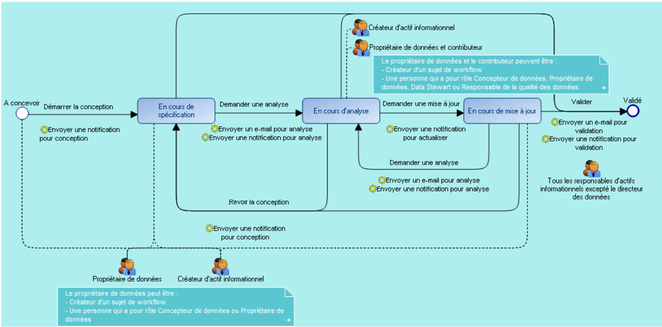 Hopex Data Governance et Hopex Data Architecture comprennent un workflow standard pour gérer la progression de la conception d'actifs informationnels, de leur création jusqu'à la fin de leur validation.