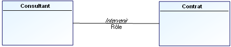 Dans l'exemple présenté ci-après, le rôle qu'un "Consultant" a joué sur un "Contrat" dépend du consultant et du contrat, donc de l'association "Intervenir".