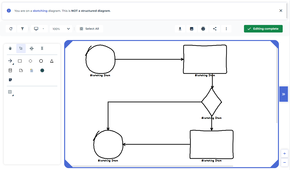 HOPEX enables you to draw diagrams freehand and connect the shapes to objects of the repository.