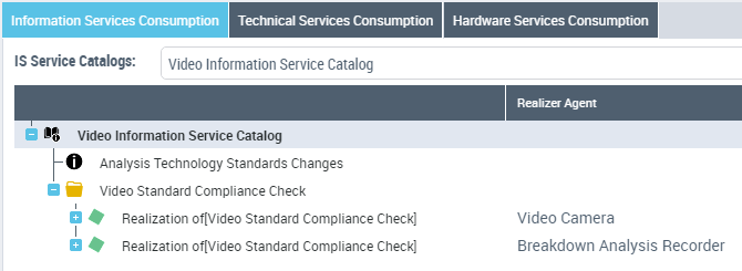 From here you can view the realizations concerning a specific service catalog item: