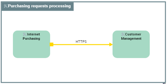 The application system deployment architecture below presents the eCommerce application deployment architecture as well as the deployment architecture for the customer management micro-system. The technical communication line between these two components is based on https.