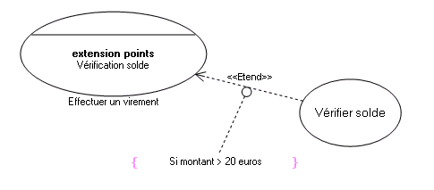 Un cas d'utilisation peut entraîner l'exécution d'un autre. Contrairement à l'inclusion qui est automatique, l'extension est optionnelle.