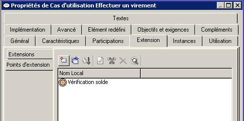 Un point d'extension peut être associé à une contrainte qui indique le moment où l'extension intervient. Vous pouvez ajouter une contrainte lors de la création de l'extension, ou ultérieurement, dans la fenêtre de propriétés du lien d'extension.