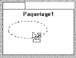 Vous pouvez relier un cas d'utilisation à un paquetage simplement en le posant dessus. Lorsque vous déplacez l'objet sur le paquetage, la forme du paquetage est mise en relief pour indiquer que l'objet va bien lui être relié.