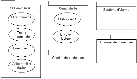 Exemples de paquetage : Le système d'information commercial, la comptabilité, la gestion de production, la commande numérique d'une machine, un système d'alarme, etc.