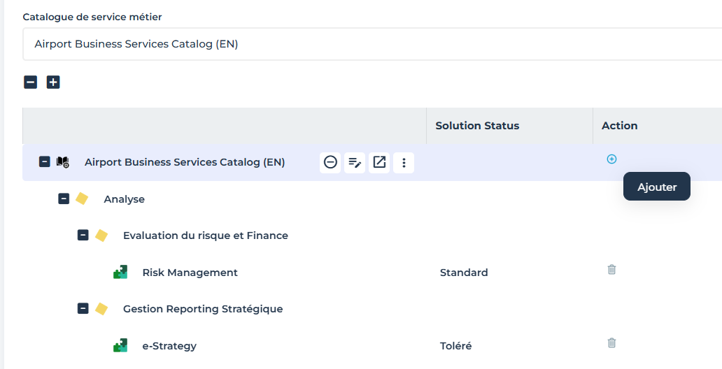 3. Dans la colonne Nouveau du catalogue de services métier, cliquez sur le bouton Ajouter.