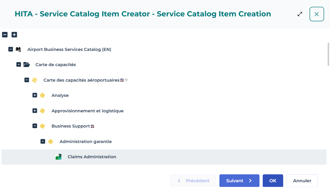 5. Sélectionnez l'objet qui met en œuvre la capacité dans le contexte de votre catalogue de service.