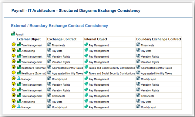 Ce rapport permet de vérifier la cohérence des échanges entre les "vues internes" et les "vues externes" dans le contexte de description de structures (interactions de service).