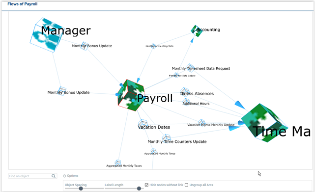 Ce rapport de type « graphe » présente une synthèse des flux applicatifs échangés par un agent (Système Applicatif, Application, Service Applicatif, Microservice, etc.).