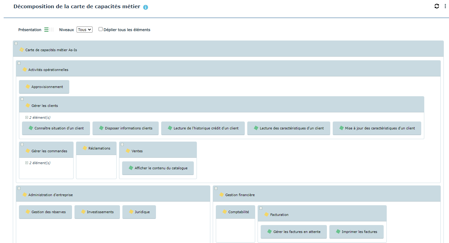Objet racine | Capacité Métier et Carte de capacités métier | Un objet obligatoire. |