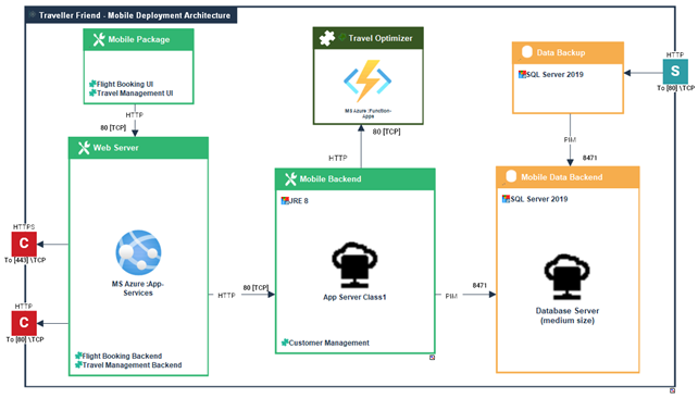 Un module de déploiement d'une application représente un élément de découpage du code d'une application en fonction de critères techniques ou d'objectifs d'hébergement. Par exemple, ce peut être le découpage en N tiers, la séparation Front End/Back End/… ou IHM/Logique métier/Base de données etc... Chaque module de déploiement d'une application est associé à des technologies requises (pour son exécution) et peut contenir le code de plusieurs services applicatifs. Un architecte peut préconiser un type d'hébergement du module (IaaS/PaaS cloud service ou un modèle de serveur).