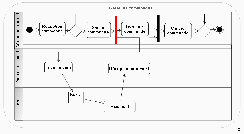 Un diagramme d'activités représente un séquencement d'étapes décrivant le comportement d'un élément du système.