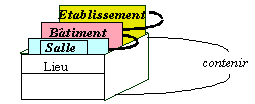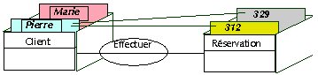 Le dessin suivant permet de visualiser "en trois dimensions" les situations qu'un diagramme de classes permet de mémoriser.