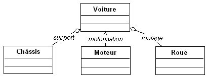 Exemple : Une voiture comprend un châssis, un moteur et des roues.