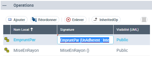 • Soit dans la fenêtre de propriétés de la classe à laquelle appartient l'opération, sous la section des Opérations.