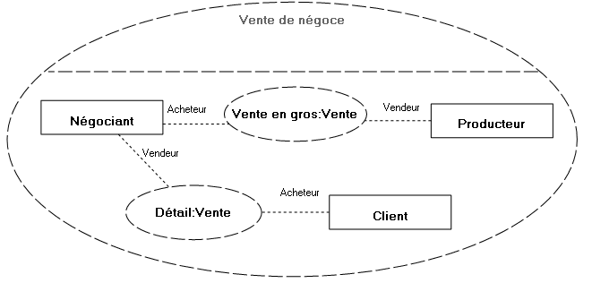 Ce diagramme décrit le rôle joué par les parties dans la collaboration "Vente de négoce".