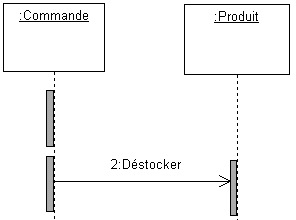 2) Le message envoyé par la classe "Commande" à la classe "Produit" appelle l'opération "Déstocker".