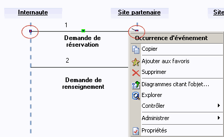 Vous pouvez accéder au menu contextuel d'une occurrence d'événement en cliquant avec le bouton droit sur l'une des extrémités d'un message.
